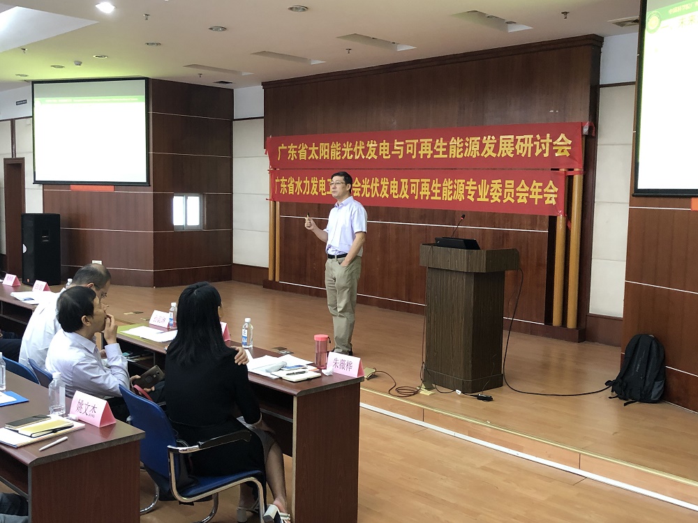 广东省水利发电工程学会光伏发电及可再生能源专业委员会庄宁生主任做了题为《广东光伏发电与可再生能源专委会组织架构、成员介绍及年度工作总结》的报告。