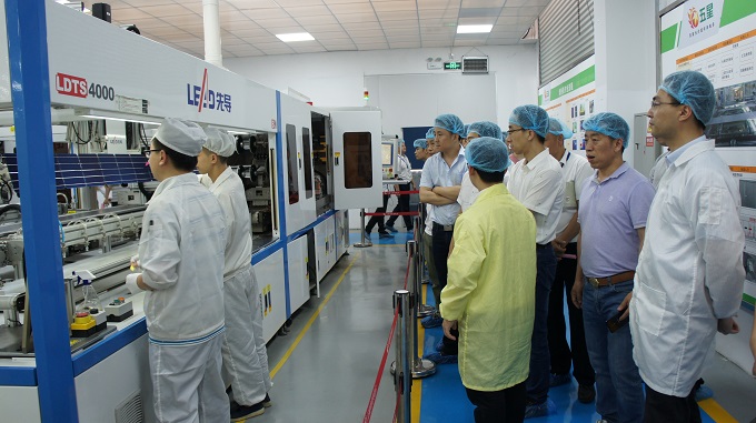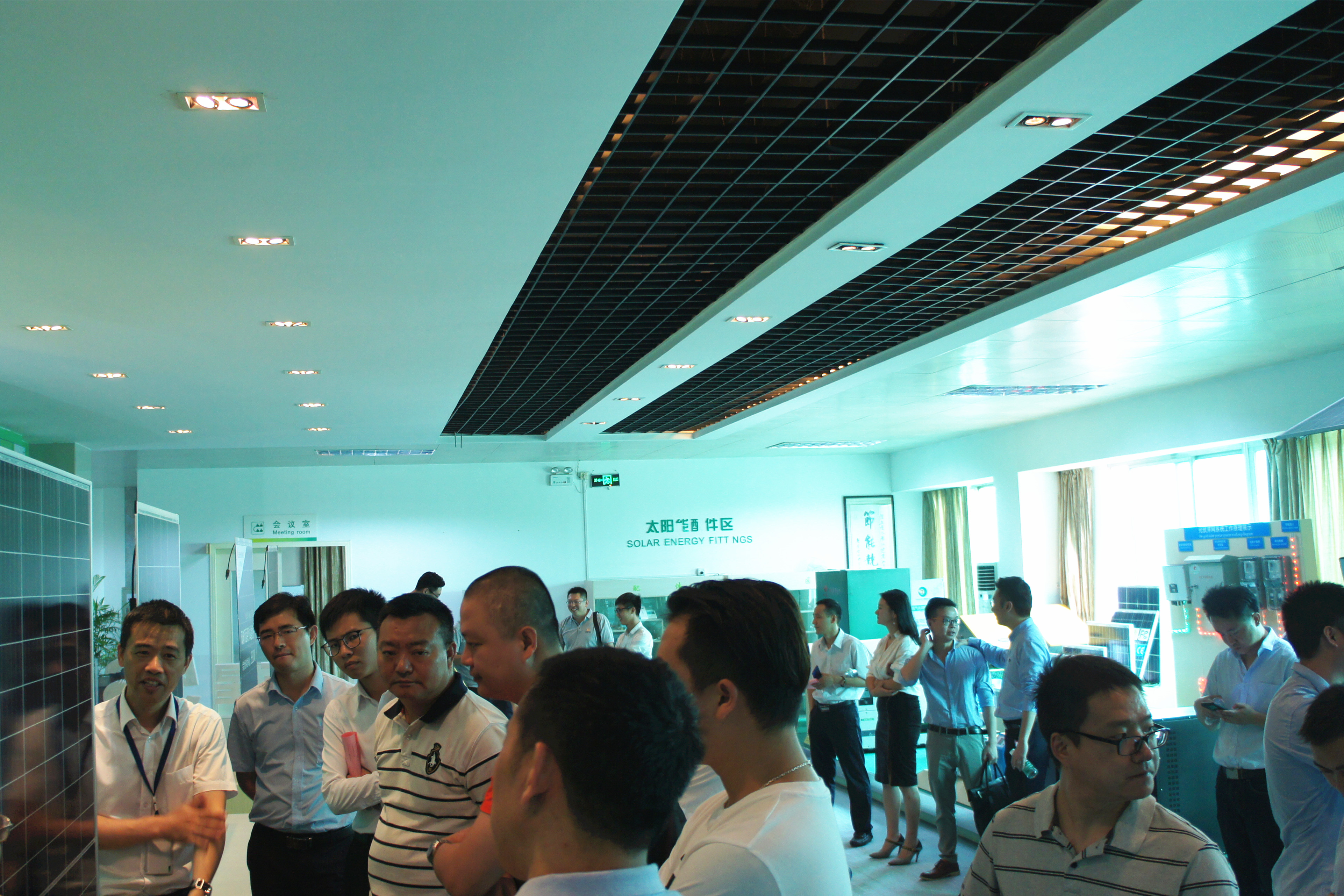 参会人员首先先后参观了五星公司展厅、智能化半片和贴膜生产车间,太阳能实验场双功能组件。