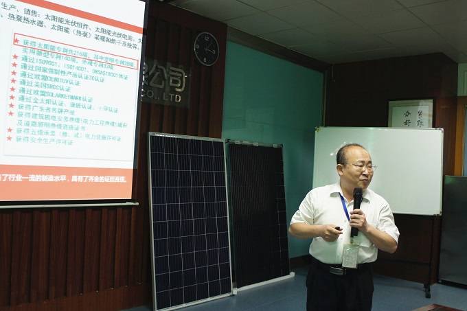 五星公司胡鄂生总经理作了公司概要介绍,五星公司,创立于1990年,三十年来坚守太阳能事业,信守承诺,创造客户价值,注重员工成长是五星的企业文化,也是五星成功的秘诀。