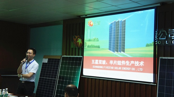 五星公司钱小锋总经理介绍了目前五星公司双玻组件和半片、贴膜新技术。