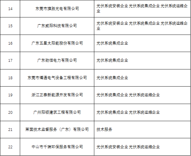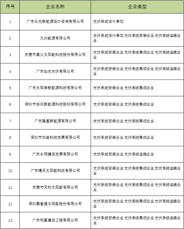 第一批“广东省分布式光伏发电项目建设规范企业(单位)”名单