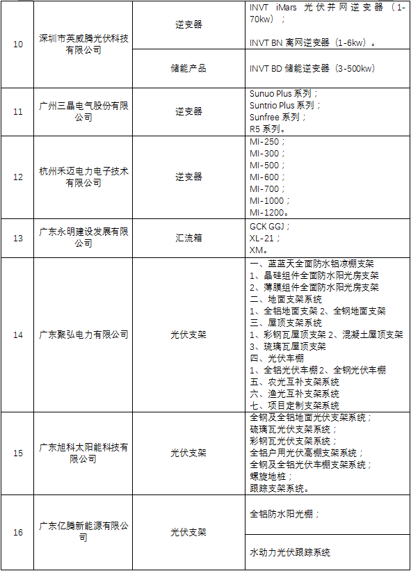 根据《广东省太阳能产品推荐目录管理办法》和《广东省分布式光伏发电项目建设规范企业(单位)名单管理办法》,为促进我省太阳能产品与技术推广应用,规范市场发展。经各会员单位自荐,协会组织专家评审,经过公示和再次审核,第一批入编名单如下: