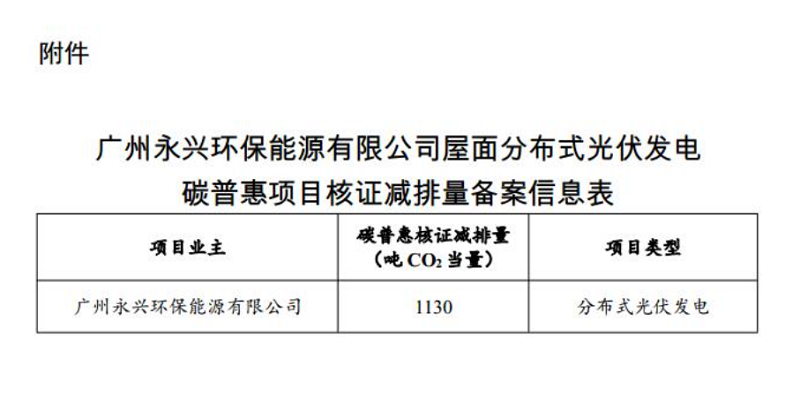 今年来,广东省生态环境厅公布了关于同意分布式光伏发电碳普惠项目减排量的备案,共有5个项目获得备案,省级碳普惠减排量10292吨CO2当量。其中我会会员企业广东粤佳太阳能有限公司的白土和杨梅分布式光伏发电碳普惠项目获得备案,如下: