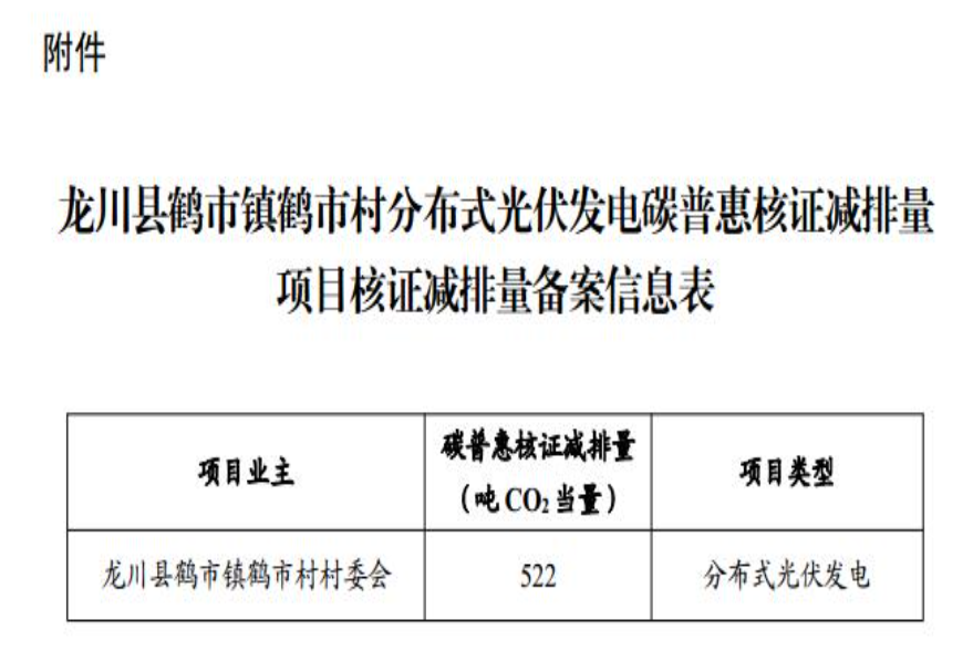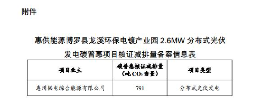 此外还有其它企业的分布式光伏发电碳普惠项目获得备案,如下: