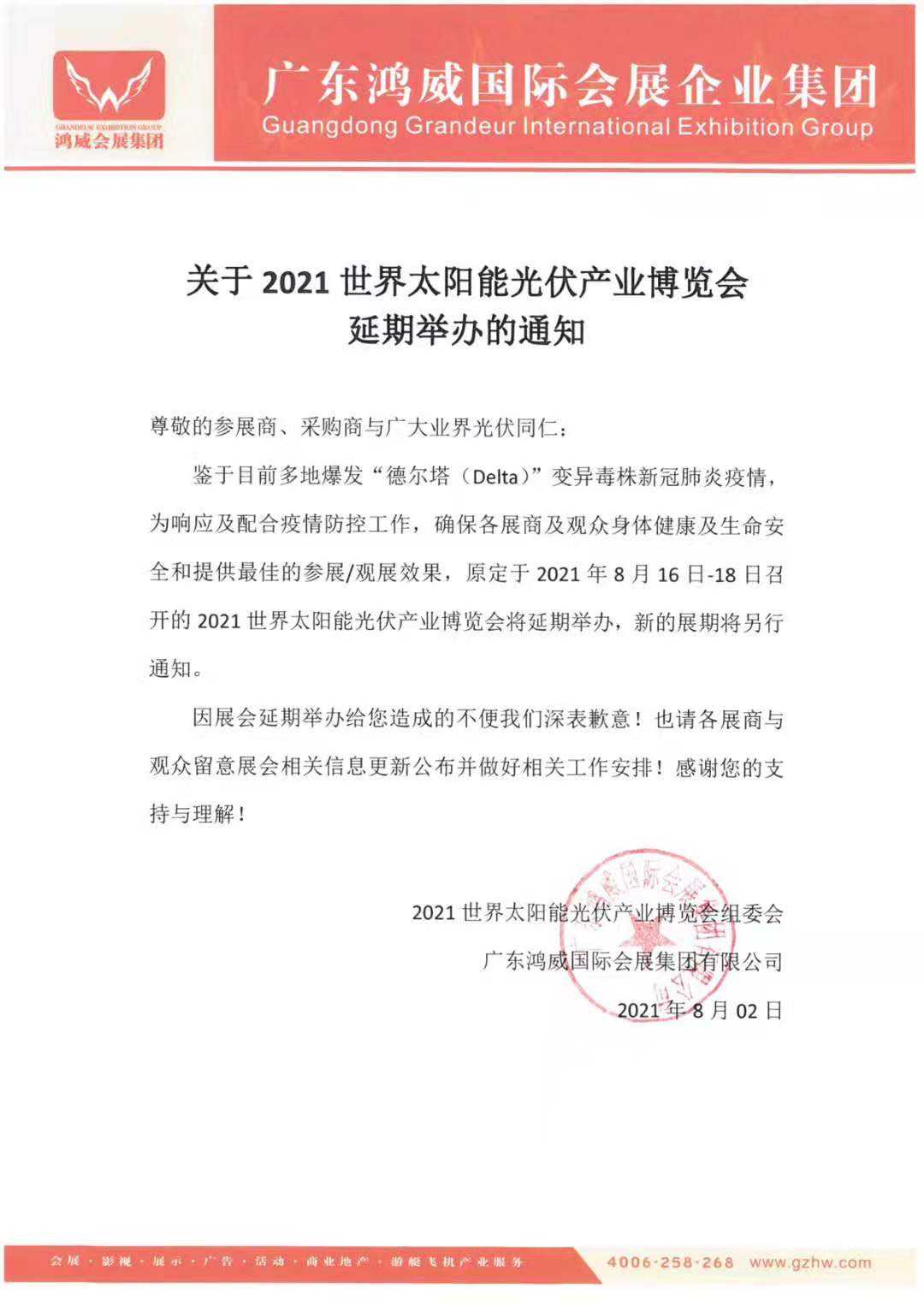 重要通知 | 2021世界太阳能光伏产业博览会将延期举办