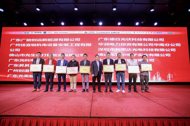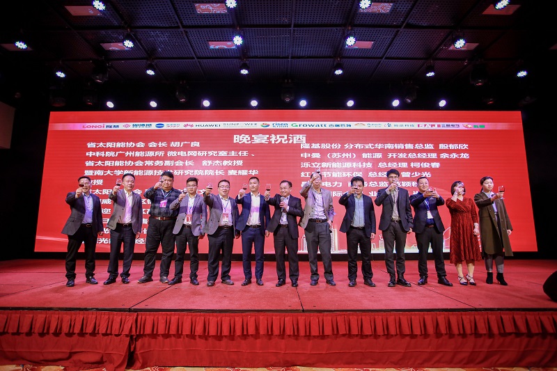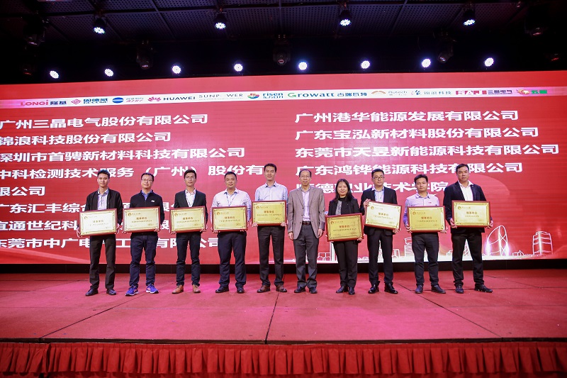 在会员大会“固德威之夜”晚宴期间,广东省太阳能协会会长、广东五星太阳能股份有限公司董事长胡广良、固德威技术股份有限公司华南区销售总监施鑫、晟博迩太阳能技术(天津)有限公司亚太区高级销售经理熊宏分别作大会晚宴致辞。期间并分别颁发了副会长单位、常务理事单位、理事单位和会员单位的牌匾,并合影留念。