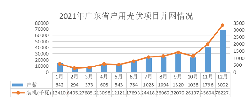 截止2021年,居民分布式累计并网约6万户,装机容量约为94.45万千瓦。2021年新增并网12522户,装机容量31.1558万千瓦,比去年同期增长123.71%。