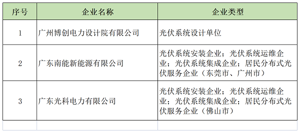第六批“广东省分布式光伏发电项目建设规范企业(单位)”名单