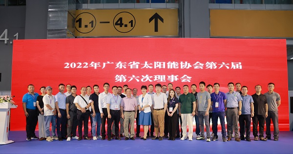 2022年8月9日中午,2022年广东省太阳能协会第六届第六次理事大会成功在广州·广交会A区召开。协会会长胡广良,党支部书记、副会长谢黎荣,监事长李为民,秘书长沈贞文及理事单位代表们参加会议,会议由我会秘书长沈贞文主持。