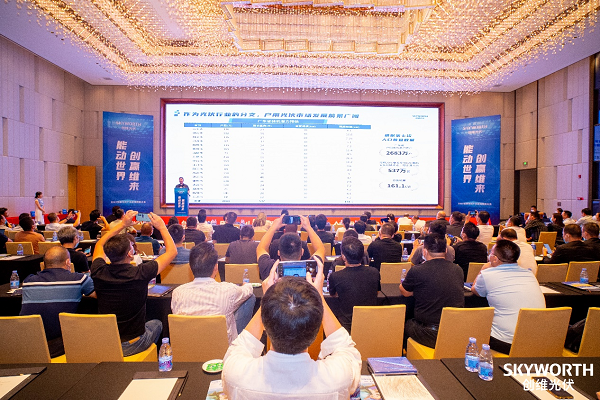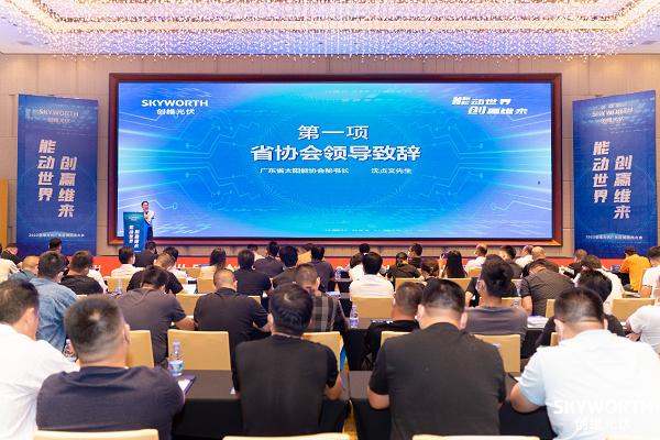 2022年10月22日,创维光伏广东区域招商大户在广州奥园喜来登酒店盛大召开,大会以“能动世界 创赢未来”为主题,诚招锦绣南粤八方英豪,抢抓机遇共襄盛世财富。广东省太阳能协会、东莞市光伏协会、清远市供电局等行业协会、电力机构与百余名新能源从业精英共同见证了创维光伏招商大会的繁华启幕。