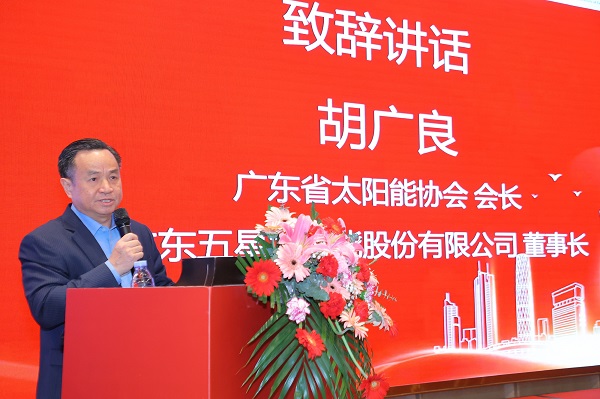 广东省太阳能协会会长胡广良致欢迎辞,提到2022年是很不平凡且艰难的一年,但是我们太阳能光伏行业实现了逆势增长,全国及我省新增光伏装机容量创历史新高;2023年广东省依然是全国光伏应用的重要市场,将迎来新的发展高潮。