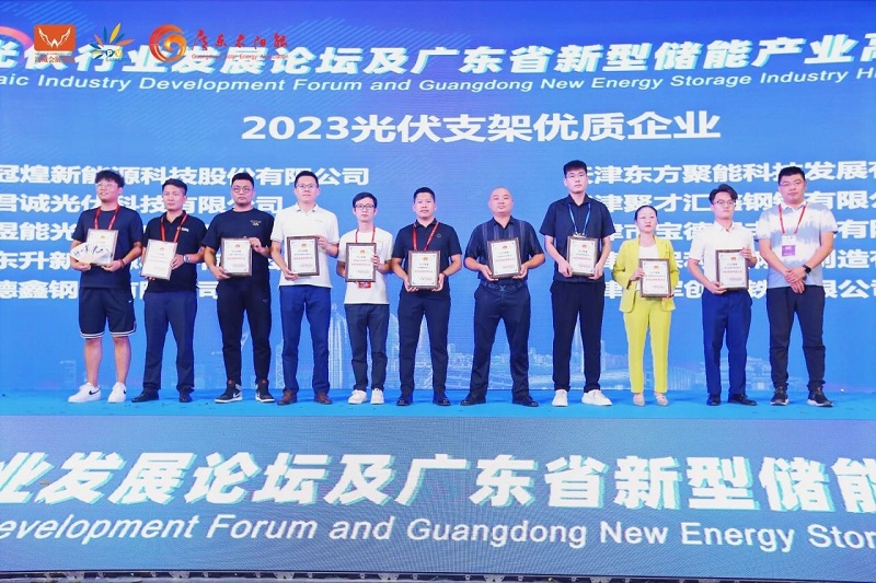 为答谢、支持这一份份辛勤与坚守,2023世界太阳能光伏暨储能产业博览会获奖企业授牌仪式为相关品牌企业颁发了2023优秀光伏、储能企业,2023光伏EPC、光伏逆变器、光伏组件、光伏支架、光伏电池、紧固件、光伏零配件、光伏运维+运营、光伏线缆优质企业等奖项。