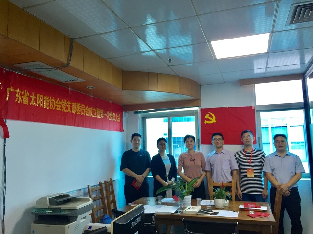 2018年7月17日10:00-12:00,广东省太阳能协会召开支部委员成立大会暨第一次党员大会,赵德强、朱薇桦、简玉松三位党员出席会议,并邀请社会组织党建辅导员谢黎容、张扬、协会副秘书长沈贞文列席。会议由拟任广东省太阳能协会党支部书记赵德强主持。
