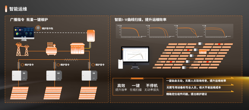 最后,该逆变器具有高精度和高速I-V曲线扫描功能,使兆瓦级电站在5分钟内即可完成扫描,从而提高了电站的整体运维效率。同时支持广播命令,可以大大提高调试效率和系统运维效率,实现数字化、高效化、降本化电站运维。