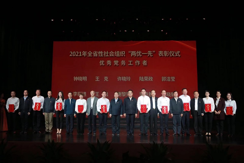 大会宣读关于表彰全省性社会组织优秀共产党员、优秀党务工作者和先进基层党组织的决定,出席领导向2021年省社会组织党委“两优一先”获得者颁奖。