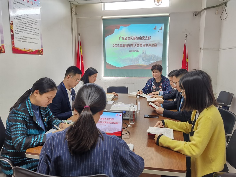 3月10日,广东省太阳能协会党支部组织召开2021年度组织生活会暨民主评议会。省社会组织党建指导员、协会党支部书记谢黎荣主持会议,协会党支部全体党员及入党积极分子参加会议。