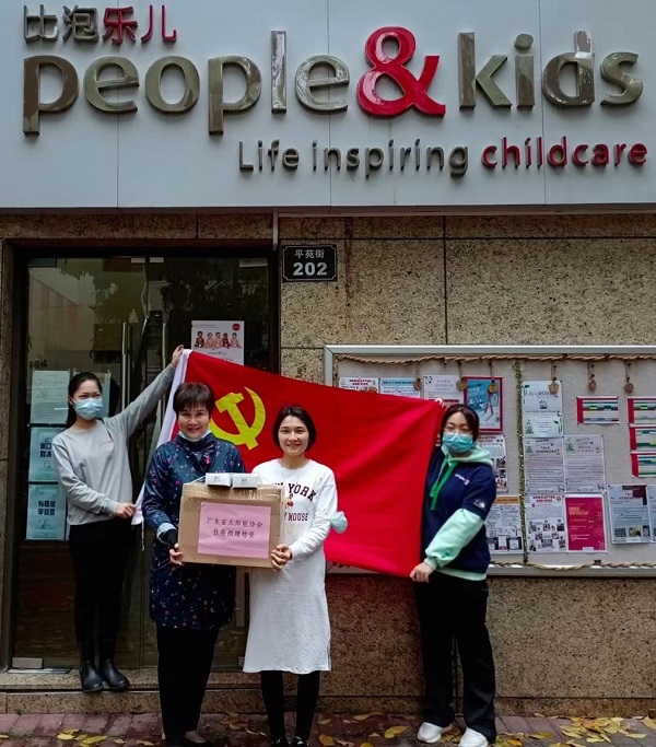 3月23日,协会第三批党员防疫小分队在支部书记谢黎荣的带领下来到社区的幼儿中心捐赠防疫物资,并与朋友们一起练习正确佩戴口罩方法,与小朋友玩“洗洗手、冲冲水”游戏。小小互动,在快乐中传播防控知识,让小朋友们从小培养卫生防护好习惯。据中心负责人戴园长介绍,这些孩子的家长们有的是战斗在抗疫一线的医护人员,有的是保家卫国的军人,有的抽调去疫情较严重地区支援工作。老师常常教导小朋友:“大家都在为战疫做贡献,小朋友们爱清洁不生病也是做贡献。”