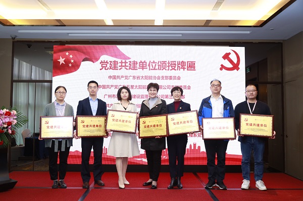 2月28日,由中共广东省太阳能协会支部委员会牵头,七家基层党组织在广州举行“党建共建”签约仪式并颁授牌匾,各党组织党员、协会会员企业等60多人参加了授牌仪式。