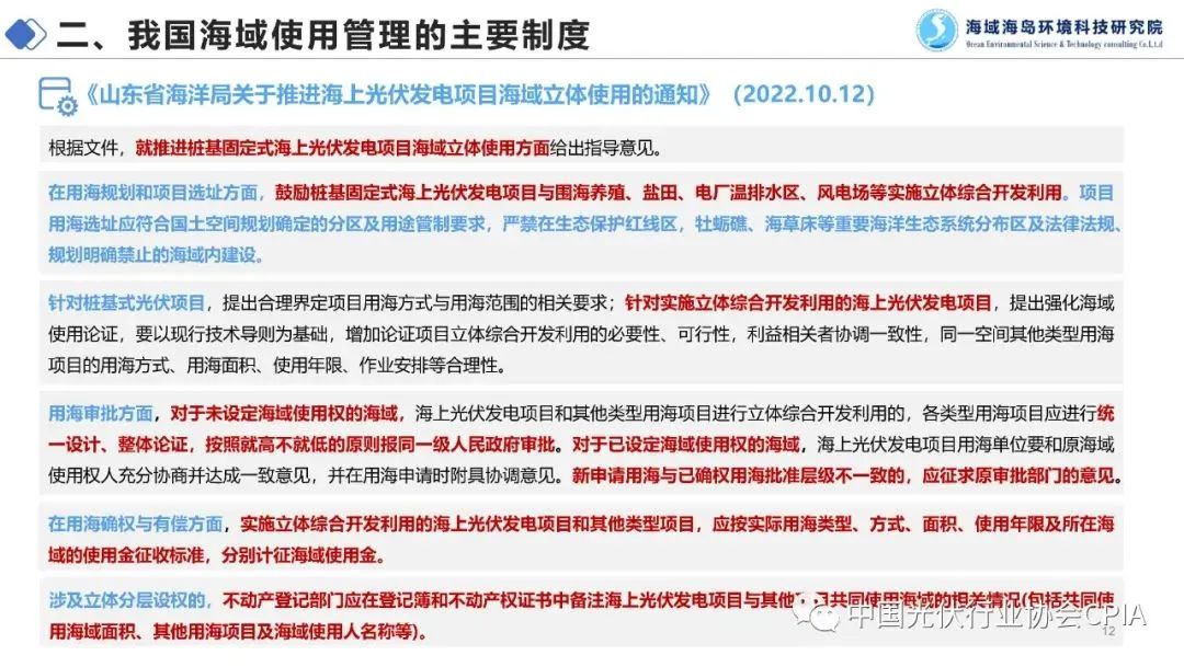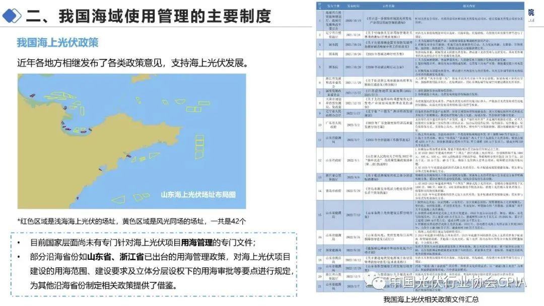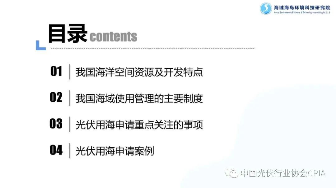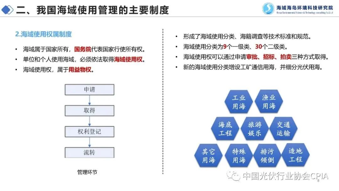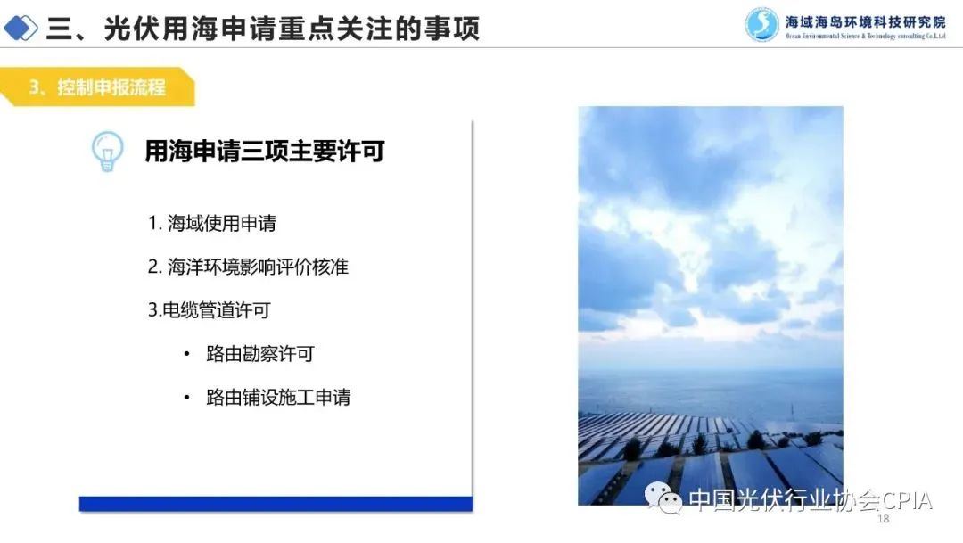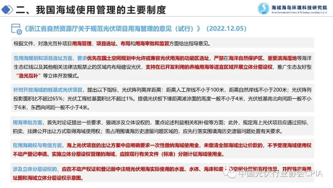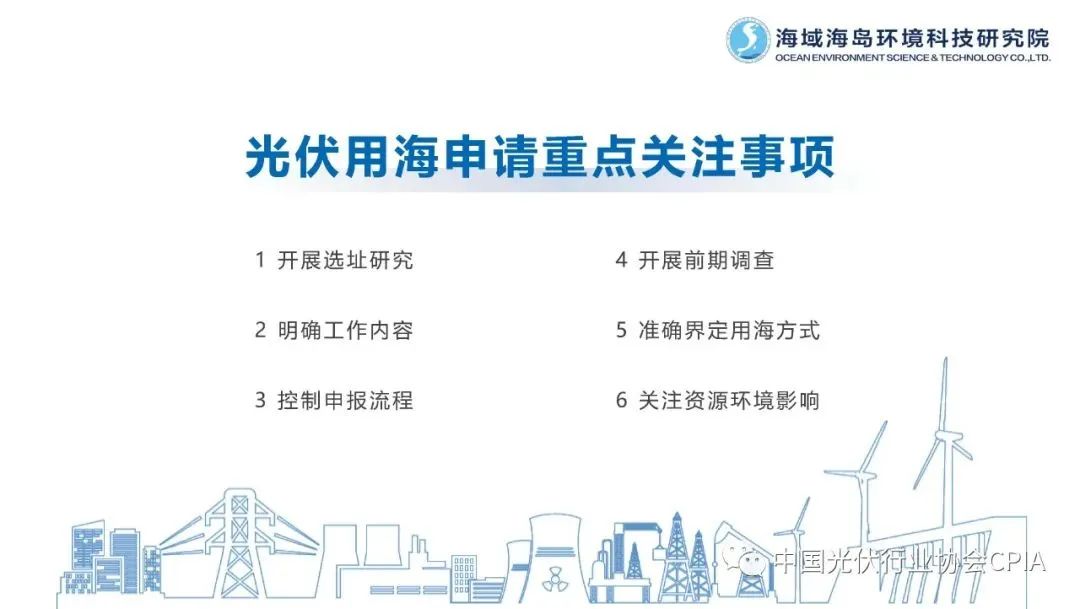2023年5月8日下午,由中国光伏行业协会主办的CPIA热点问题系列线上研讨会第十一期——海上光伏项目前期开发和实践分析研讨会通过网络直播形式顺利召开。海域海岛环境科技研究院(天津)有限公司董事长徐伟深入分析了我国海域开发的特点、制度及光伏用海策略。徐博士强调,光伏用海申请需要开展选址研究、控制申报流程、开展前期调查、准确界定用海方式、关注资源环境影响等。 PPT全文如下: