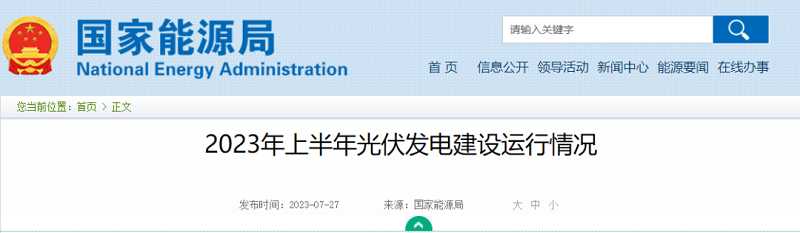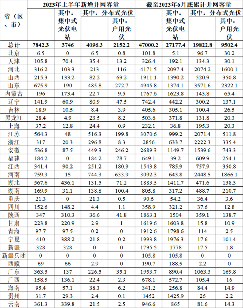 7月27日,国家能源局公布2023年上半年光伏装机的详细数据(详细数据见附件)。2023年上半年总装机为7842万千瓦,地面电站、工商业分布式、户用光伏新增装机分别为:3746万千瓦、1944万千瓦、2152万千瓦。其中,