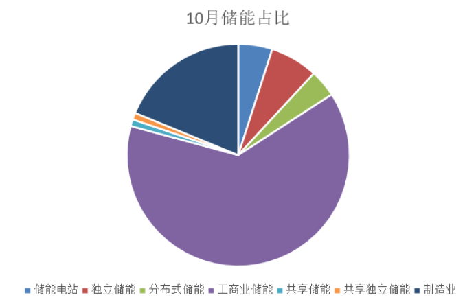 从储能技术类型来看,包括磷酸铁锂电池、AGM铅碳电池,固态铅电池等。而从储能性质类型占比来看,占比前三的类型为工商业储能、制造业储能和独立储能,其中工商业储能占十月总储能备案的63.37%,居十月首位。