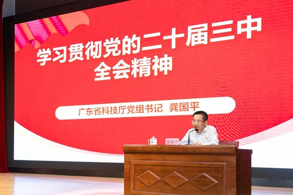 会议要求,要提高政治站位,深刻认识本次全会是在以中国式现代化全面推进强国建设、民族复兴伟业的关键时期召开的一次十分重要的会议,是新的历史起点上进一步全面深化改革、推进中国式现代化的总动员、总部署。要把学习宣传贯彻党的二十届三中全会精神作为当前和今后一个时期的重大政治任务,把落实《决定》部署与学习贯彻习近平总书记视察广东重要讲话、重要指示精神结合起来,与学习贯彻总书记在全国科技大会上的重要讲话结合起来,努力在全面学习、全面把握、全面落实上下功夫。要全面抓好全会和《决定》各项改革部署的贯彻落实,结合省委“1310”具体部署,坚持党对科技工作的全面领导,系统分析科技领域战略性、方向性、全局性重大问题,谋划新时期我省新一轮科技体制改革主要任务,持续提升科技创新体系整体效能,奋力激发科技作为第一生产力所蕴藏的巨大潜能,切实把进一步全面深化改革的战略部署转化为推进中国式现代化广东实践的具体举措和实际成效!