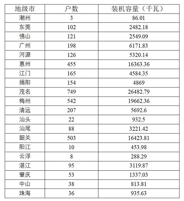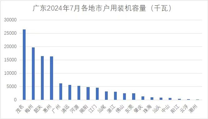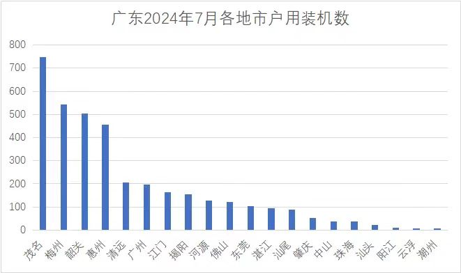 2024年7月,广东省新增户用装机3675户,总规模为121.79MW,其中茂名、梅州、韶关列前三。
