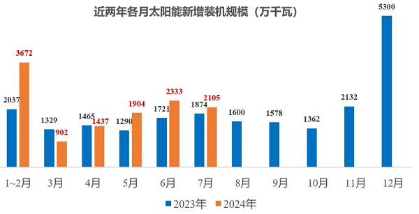 2024年7月新增21.05GW,同比增长12.3%;1~7月新增123.53GW,同比增长27.1%!