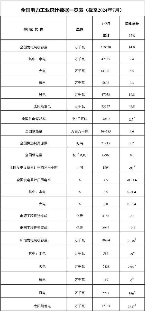 8月23日,国家能源局发布1-7月份全国电力工业统计数据。
