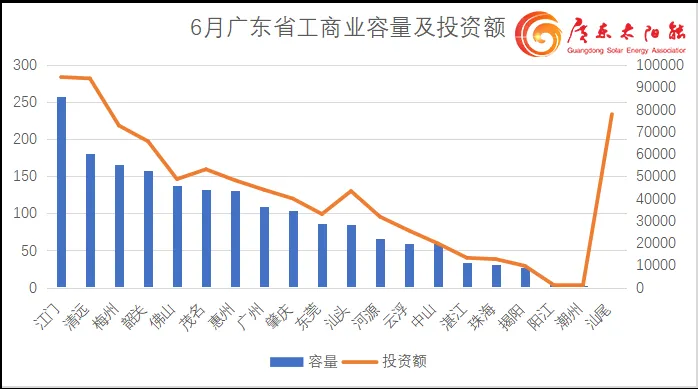 2024年6月,广东省共新增1615个工商业项目,总投资额83.07亿元。项目主要分布在肇庆、惠州、佛山、东莞、江门、广州、中山这7个地市,备案数量均超过100项。