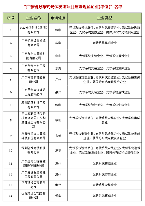 《广东省太阳能产品推荐目录》和《广东省分布式光伏发电项目建设规范企业(单位)名单》