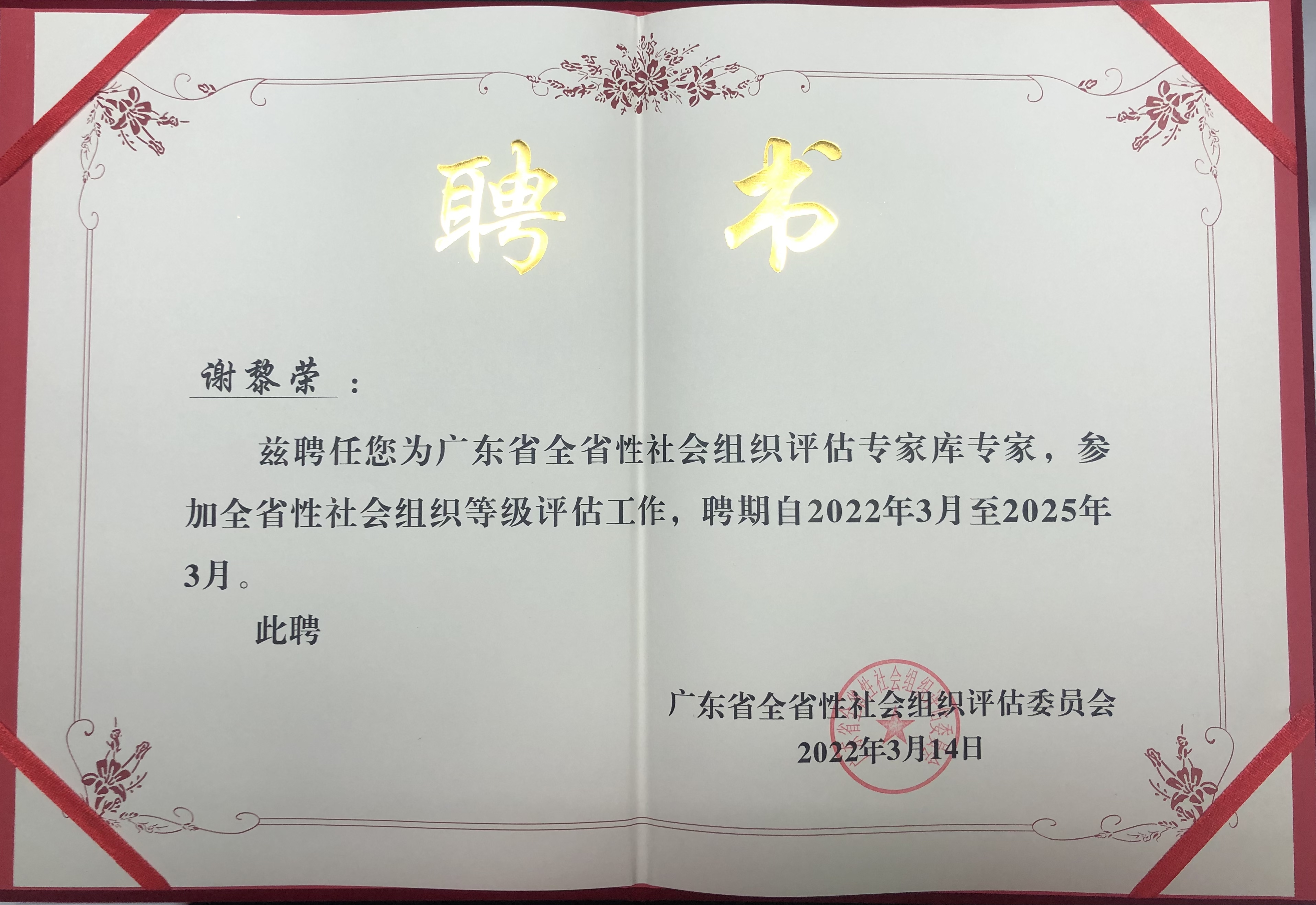 喜讯┃协会党支部书记谢黎荣再次被聘为广东省社会组织等级评估专家