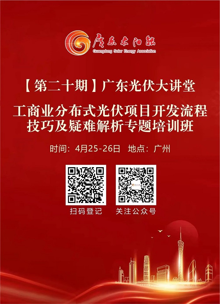 2024 年是“十四五”规划发展的关键之年,推动新能源健康、大规模高质量发展是重要任务,依据国家能源局数据2023年广东新增分布式光伏并网装机容量617.9 万千瓦,工商业新增装机容量5.48GW,位列全国第三,创历史新高。省内深圳市、中山市、肇庆市、佛山南海区、广州黄埔区等地区相继出台政策支持分布式光伏发展。为更好的帮助行业内光伏电站的从业人员提高分布式项目整体开发流程技巧,为行业培养专业的项目开发人员,广东省太阳能协会计划举办关于“工商业分布式光伏项目开发流程技巧及疑难解析专题培训班”,培训结束及考核及格后由广东省太阳能协会颁发《工商业分布式光伏项目开发流程技巧及疑难解析专题》培训结业证书,具体详情如下: