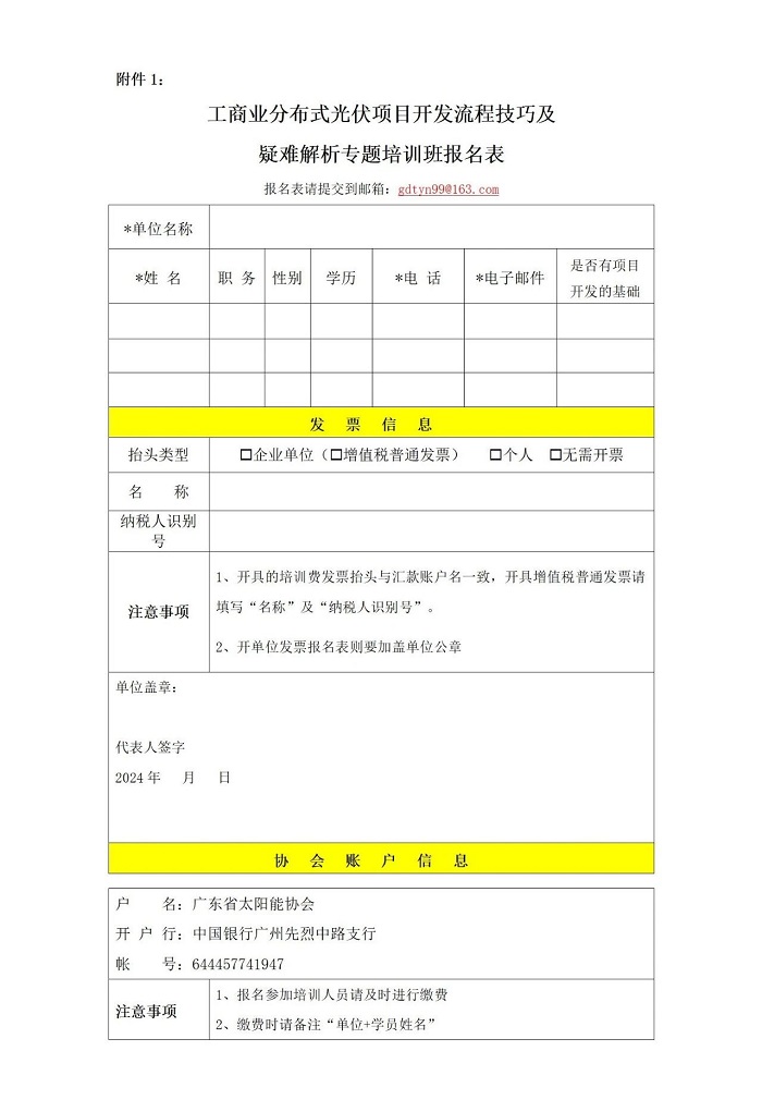 填写附件1:工商业分布式光伏项目开发流程技巧及疑难解析专题培训班报名表,或扫码登记报名。