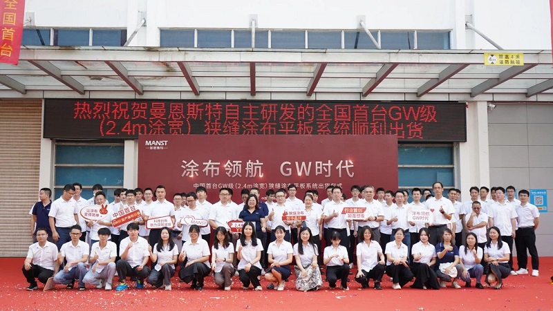 2024年8月26日,由深圳市曼恩斯特科技股份有限公司自主研发的中国首台GW级(2.4m涂宽)狭缝涂布平板系统正式对外出货,以“涂布领航,GW时代”为主题的出货仪式于当天上午9:30开始,曼恩斯特董事长及相关负责人均莅临现场,共同见证了这一激动人心的时刻。