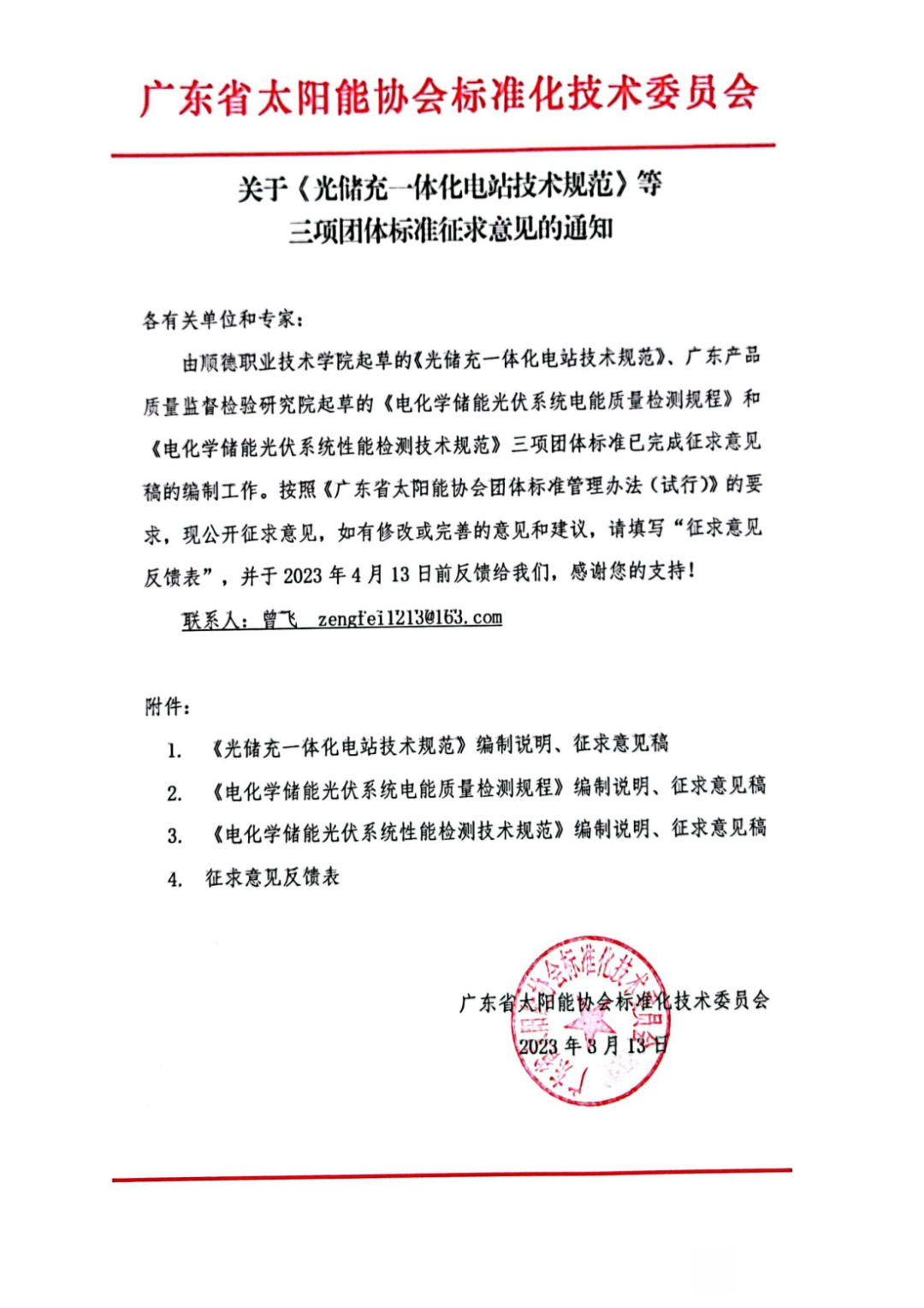 关于《光储充一体化电站技术规范》等三项团体标准征求意见的通知