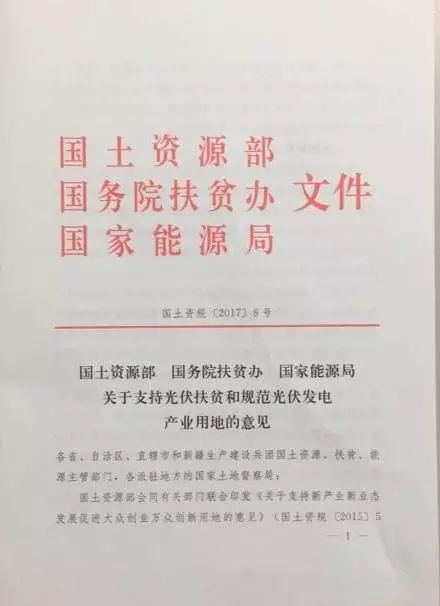 国土资源部会同有关部门联合印发《关于支持新产业新业态发展促进大众创业万众创新用地政策的意见》(国土资规[2015]5号)以来,对促进光伏发电产业发展起到积极作用。随着光伏扶贫工作力度不断加大,光伏发电产业持续发展,对用地管理提出了新的要求,为深化供给侧结构性改革,依据相关法律法规政策,现就支持光伏扶贫和规范光伏发电产业用地提出以下意见: