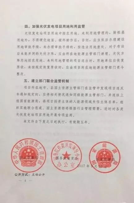 项目所在地市、县的国土资源主管部门在监管中发现项目违反本通知规定,应将相关情况通知同级能源主管部门,并逐级上报国家能源局,将项目投资主体纳入能源领域失信主体名单,组织实施联合惩戒。国土资源部将根据行业管理需要,适时对各类光伏发电项目用地开展专项监测。