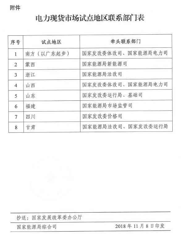 近日,国家能源局综合司下发《关于健全完善电力现货市场建设试点工作机制的通知》,指出要建立协调联系机制、加快推动试点工作、建立信息报送机制等。相关试点省份包括南方(以广东起步)、蒙西、浙江、山西、山东、福建、四川、甘肃。