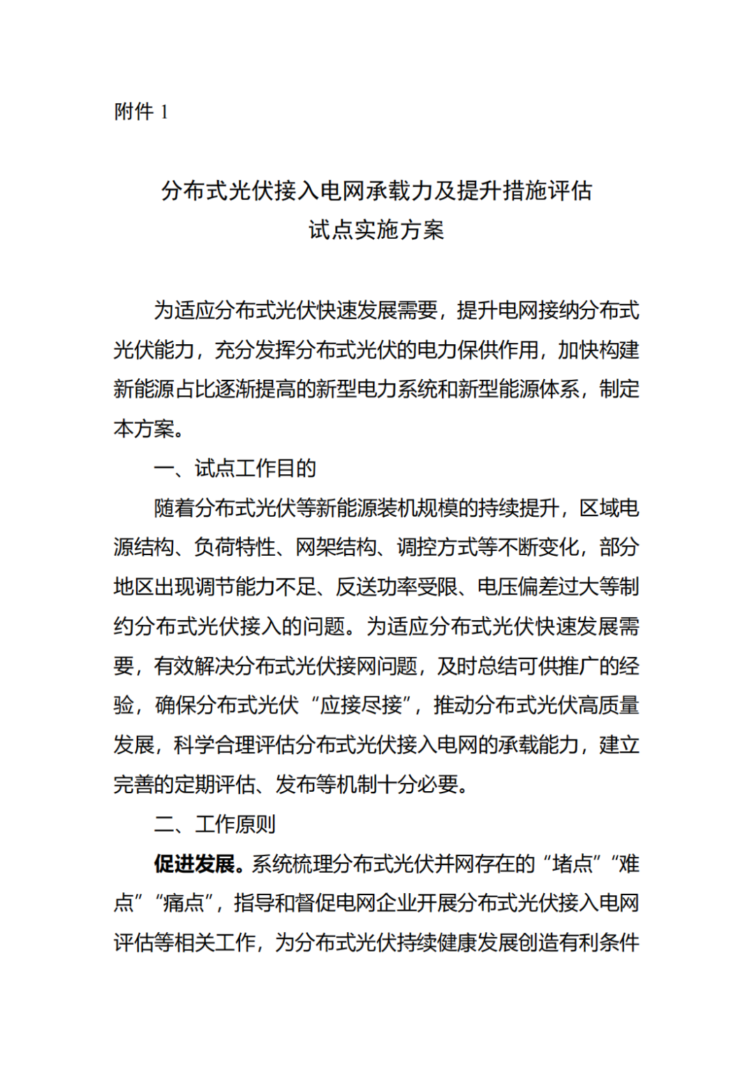 为贯彻落实党的二十大精神,积极稳妥推进碳达峰碳中和工作,充分发挥分布式光伏在推进我国新型能源体系建设中的积极作用,着力解决分布式光伏接网受限等问题,拟在全国范围选取部分典型省份开展分布式光伏接入电网承载力及提升措施评估试点工作,逐步探索积累经验,为全面推广相关政策措施奠定基础。现将有关事项通知如下:
