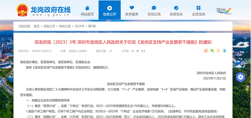 深龙府规〔2023〕3号 深圳市龙岗区人民政府关于印发《龙岗区支持产业发展若干措施》的通知