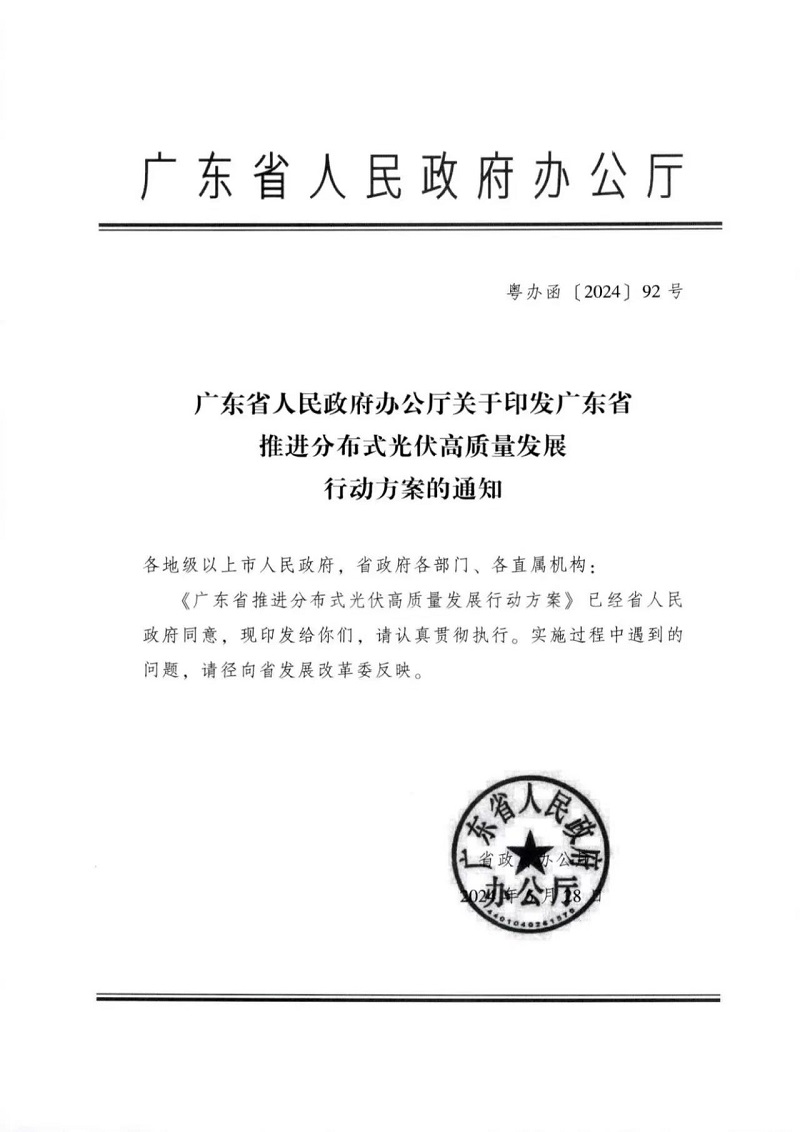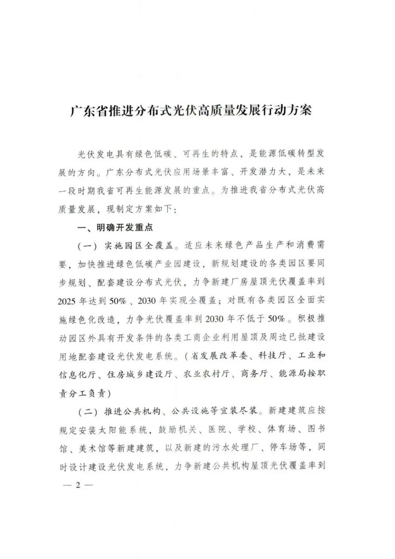 近日,广东省人民政府办公厅印发《广东省推进分布式光伏高质量发展行动方案》,文件提出: