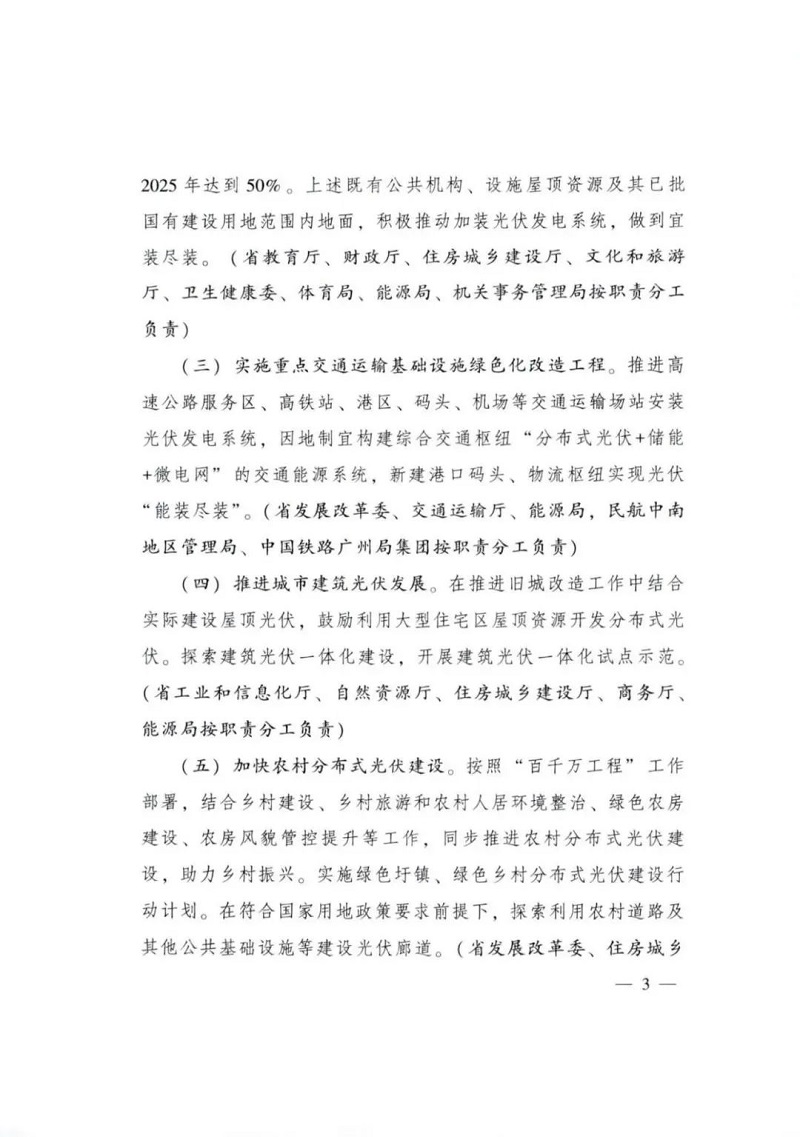 3、推进高速公路服务区、高铁站、港区、码头、机场等交通运输场站安装 光伏发电系统