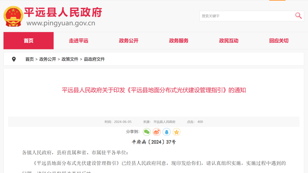 近期,平远县人民政府印发《平远县地面分布式光伏建设管理指引》,对该县地面分布式光伏项目进行规范。