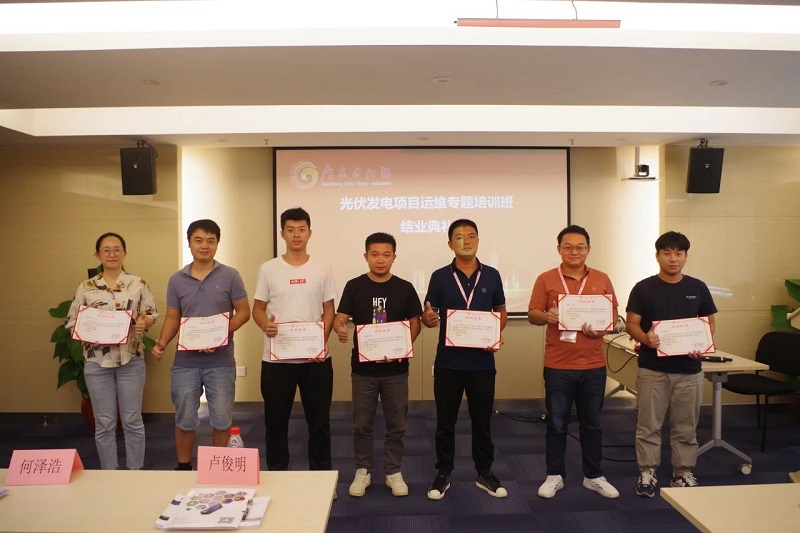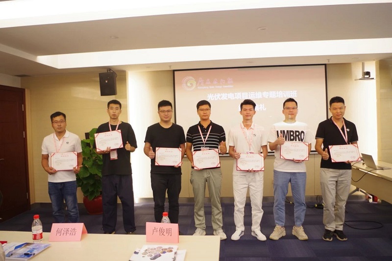 本次培训班主要围绕光伏发电项目运维的市场现状,运维方法、工具和常见的设备故障原因,安全运行制度、应急预案等内容为学员们开展为期两天的专业培训,培训模式采用线下运维知识系统学习+实训项目地现场实操练习相结合,实训项目地的项目特点是采用多个品牌的光伏组件、逆变器等多角度建的成示范性项目。培训期间学员们认真听讲,现场交流互动环节积极提问,本期培训学员反响效果甚好。培训结束后,对表现优秀的学员颁发结业证书。