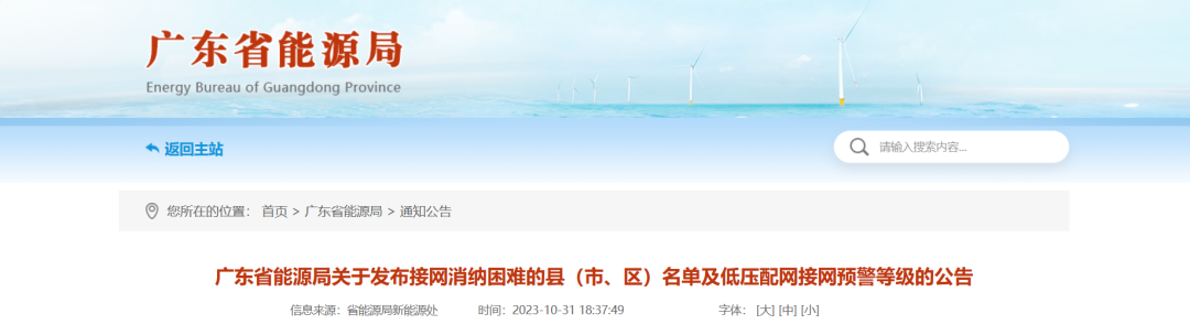广东省能源局关于发布接网消纳困难的县(市、区)名单及低压配网接网预警等级的公告