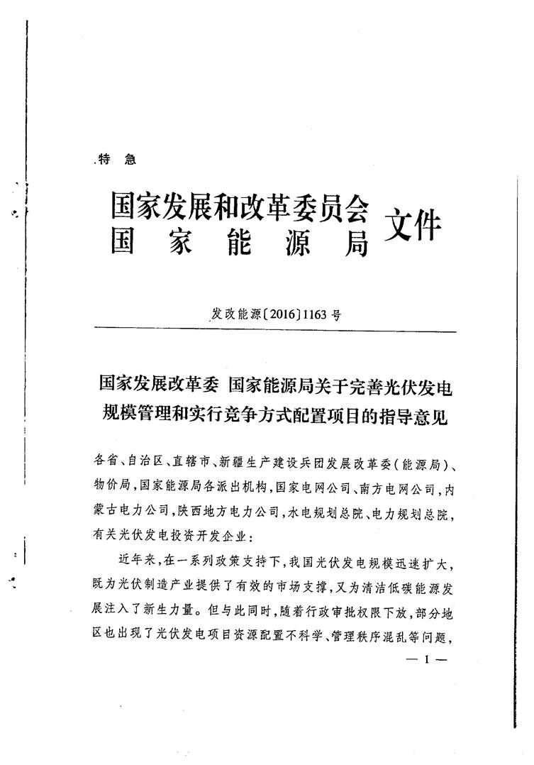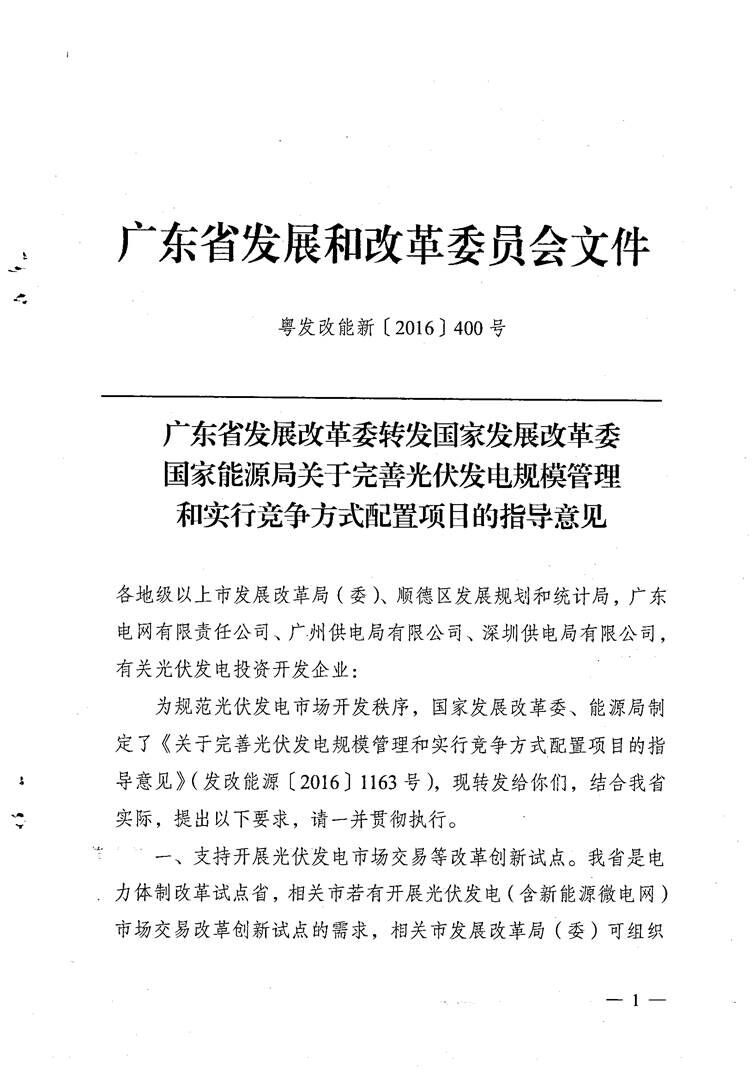 广东省发展改革委转发国家发展改革委国家能源局关于完善光伏发电规模管理和实行竞争方式配置项目的指导意见